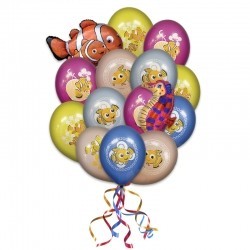 Букет «Водный мир Немо» из 15 разноцветных латексных шаров с принтом Немо и 2 фольгированных фигур рыбок создадут весёлое праздничное настроение, много ярких эмоций и приятно удивят от мало до велика.